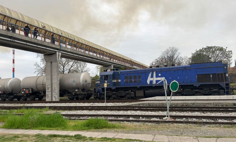 Kompozicija s 10 vagona-cisterni izmještena je s kolosijeka u blizini zapaljene zgrade na peron ispred željezničke stanice