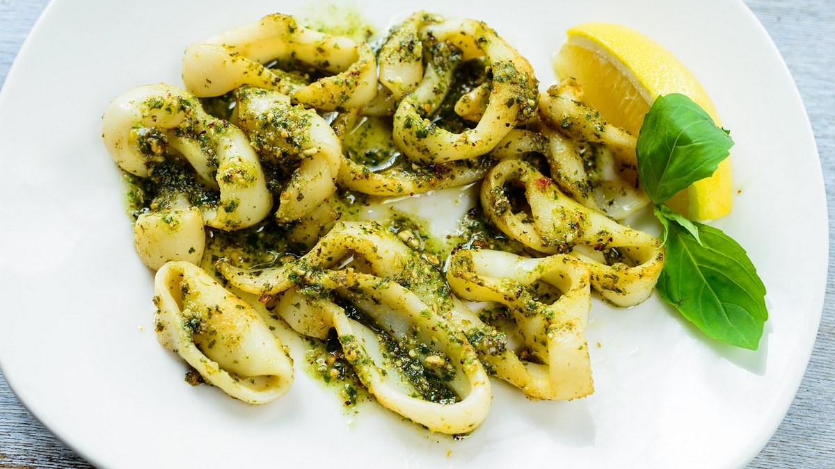 Priprema je jednostavna – lignje očistite i narežite na kolutiće, a krakove usitnite. Na maslinovom ulju popržite češnjak, kada zamiriše dodajte lignje i kratko pirjajte. Potom dodajte šest žlica pesto umaka, dobro promiješajte, posolite i popaprite, pa na laganoj vatri pirjajte desetak minuta.