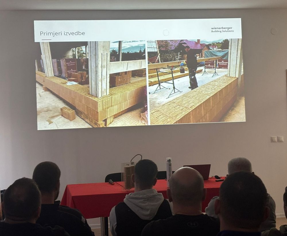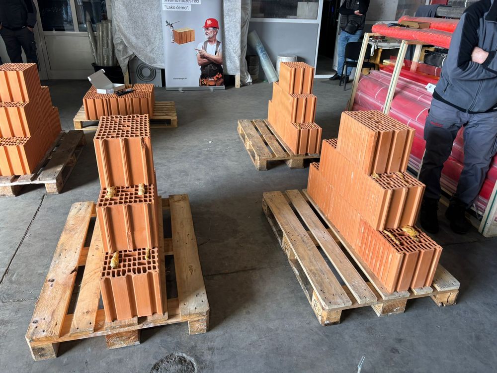 Velika brzina zidanja bila je glavna tema i prvog dijela praktične edukacije na kojoj je Profi sustav gradnje prezentiran kao jednostavan, suh i čist te tri puta brži od klasičnog zidanja. Prvi red se, doduše, slaže na malter (1,5 do 2 cm) i odmah nakon toga do izažaja dolazi ubrzanje u postupku zidanja.