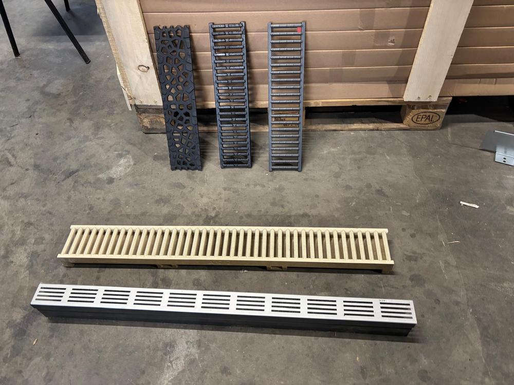 Zatim, imaju kanalice od polipropilena u U-profilu preko kojih također mogu prelaziti automobili. I posebne kanalice za dvorišta i terase (ACO Slimline) s uskom rešetkom od 6 mm rezistentnom na sol i klor (neće hrđati), ali preko nje se ne može prolaziti automobilom.