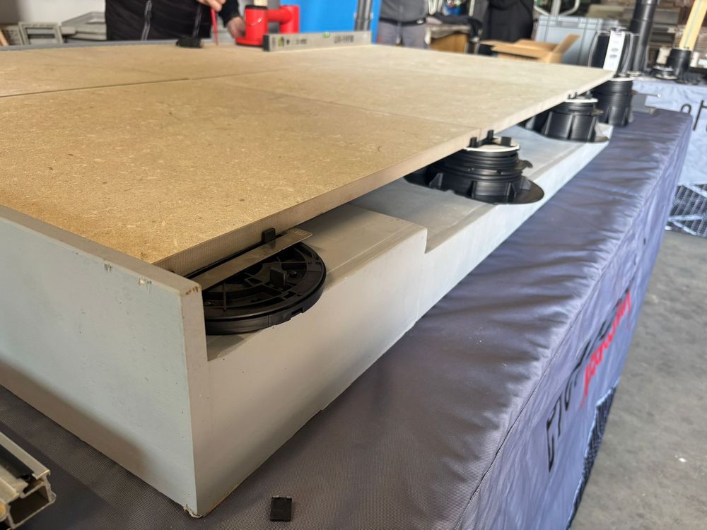 Dugačak je popis prednosti gradnje ovakvih podova. Dakle, sve instalacije koje su ispod su lako dostupne. Imate, primjerice, jacuzzi kadu ili izdignuti bazen na terasi na dvorištu ili na ravnom krovu, sve instalcije su elegantno skrivene ispod poda i svaki problem s instalacijama rješavate u nekoliko minuta. Nadalje, fuge među pločicama su uvijek otvorene pa se voda lako slijeva i ispod ide prema slivniku. Sustav je otporan na velike težine – može izdržati jednu, dvije ili čak tri tone uz pomoć kombinacije različitih modela nosača i s pločicama primjerene debljine, ali to ne znači da na njega možete naparkiravati automobile.