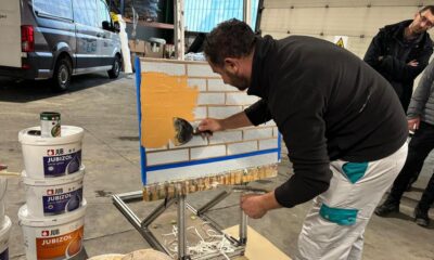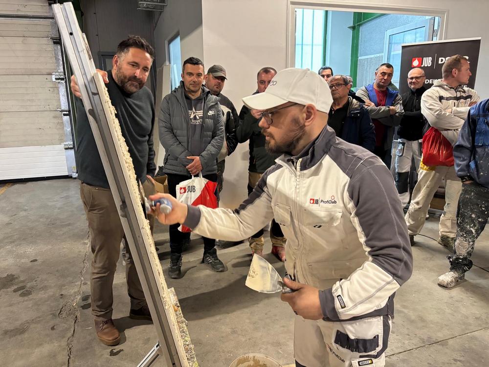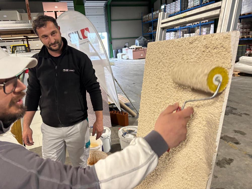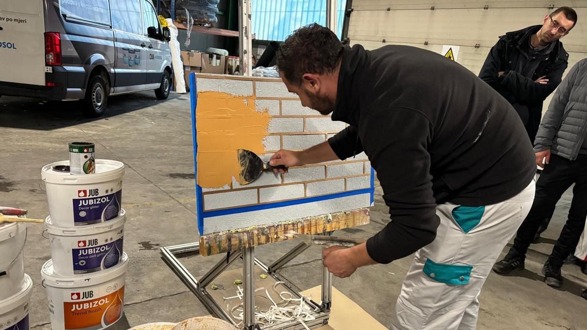 Nije bilo teško pronaći dobrovoljce za rad s različitim masama za dekoraciju fasada na radionici koju je proizvođač JUB upriličio u Edukacijskom centru Izolirka. Majstori kažu da je materijal podatan za uporabu i da ima dovoljno tzv. otvorenog vremena (ne suši se previše brzo) za sve vrste naknadnih intervencija nakon što se jednom masa nanese na zid.