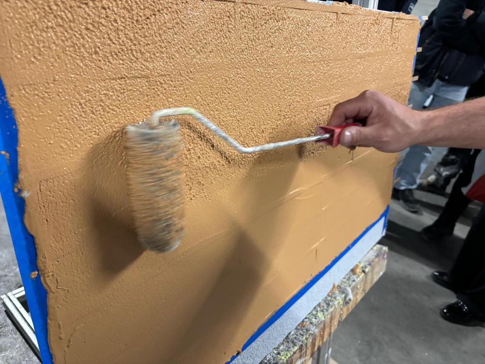 Dobar majstor će bez posebne pripreme praktički unutar dvije minute obaviti posao na kvadratnom metru površine, a iz publike se moglo čuti kako “se upravo to traži”. Naknadno su poslije trenirali i ubacivanje elemenata svijetlog ili tamnog glitera koji je pospješio završno svjetlucanje fasade. Praktikanti su rado isprobali kompresor i specijalni radni lijevak pomoću kojega u iznimno kratkom vremenu mogu raspršivati taj završni sloj po iznimno velikim površinama.