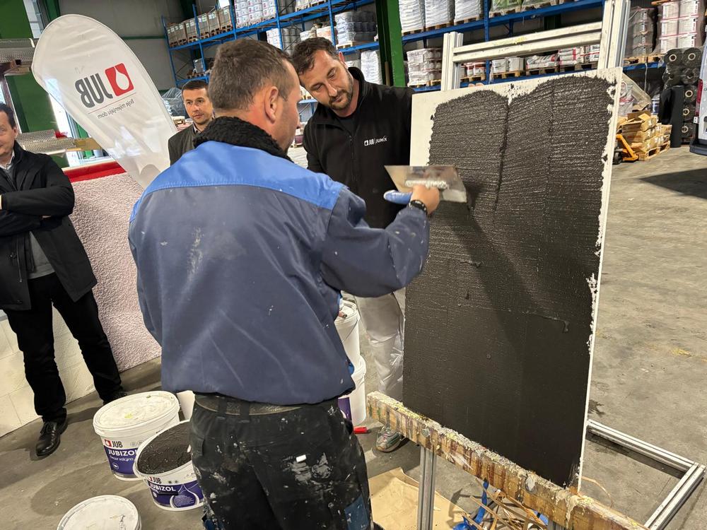 Nešto ranije, okupljeni izvođači su upoznati s novostima u ponudi JUB proizvoda, pa je i tu bilo doista zanimljivih momenata. Primjerice, Jupol Latex Premium je ekološki prihvatljiva unutrašnja lako periva boja za novo bojanje ili renoviranje zidova i stiropora. Riječ je o punom matu, otpornom na dezinficijense, a kao i ostale boje u njihovom premium segment ispitana je i potvđena za standarde utjecaja na objekte kroz cijeli životni vijek. Primjenjuje se kod energetski učinkovite gradnje tzv. zdravih kuća, odnosno ta je razina kvalitete osmišljena s posebno brigom za sigurnost potrošača i s brigom za izvođača.