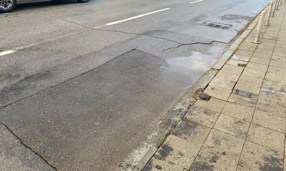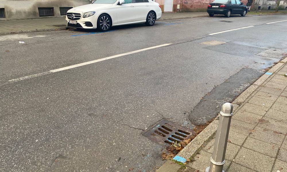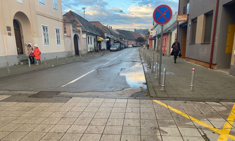 Najuži centar grada. Cesta iza konkatedrale, Pejačevićeva je dvosmjerna do Waldingerove. Kad automobilom idete prema zapadu, na tom kratkom potezu dobrano ćete osjetiti kako je kolnik načičkan rupama. Zapravo, kompletna je cesta ispucala i vizualno očajna, a nešto više od 30 konkretnih rupa i zakrpa praktički svakih nekoliko metara deniveliraju cestovni pravac. Rupe su većih ili manjih dimenzija, dublje ili pliće, no posebno su izražene u vrijeme kiše, kada se napune vodom koja u njima stoji danima.