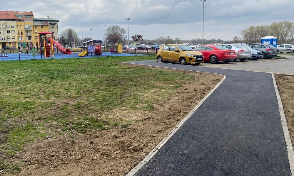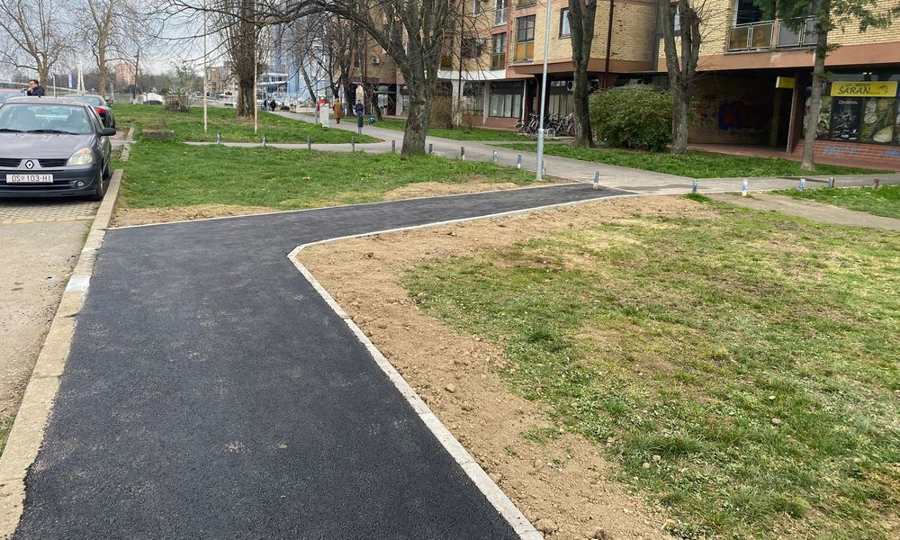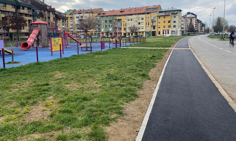 Završeni su radovi na izgradnji nogostupa po obodu sjeverne strane velike livade na Gornjodravskoj obali koji vodi do dječjeg igrališta Legos. Do sada je igralište imalo pješački prilaz isključivo s južne strane, ali kako je kapija za ulaz bila postavljena i u sjevernoj ogradi onda su djeca i roditelji uglavnom do igrališta hodali cestom namijenjenom automobilima. Za pješake je to bilo nezgodno i ponekad opasno.