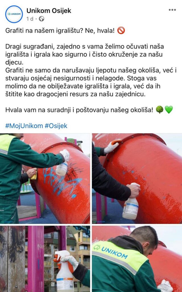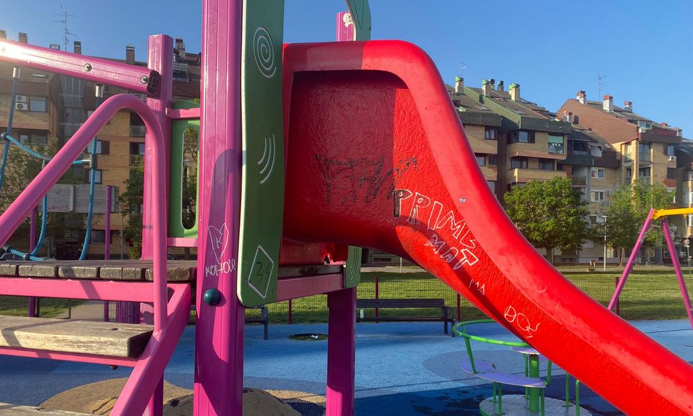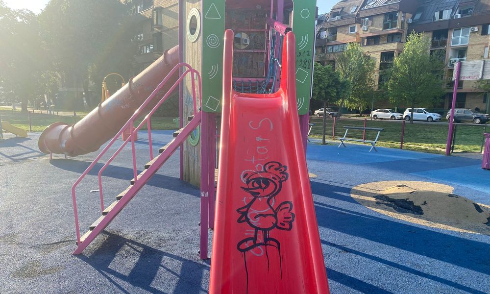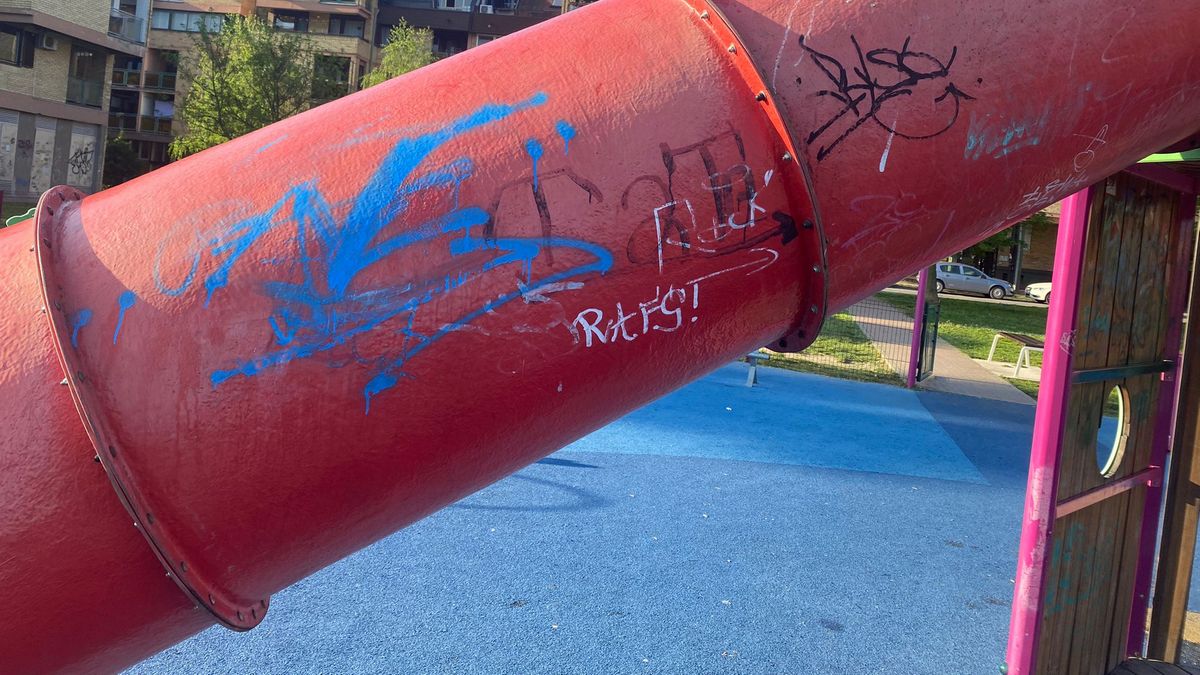 Vi destruktivni klinci, kad ste već tako hrabri i umjetnički nadareni, što po danu ne crtate grafite i ne ispisujete poruke. Što ne dođete s kantom boje i ogradite tobogan, pa krenete crtati likove preko spusta dok je igralište puno odraslih i djece. Lako je glumiti frajere po mraku.