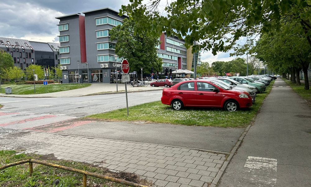 Tijekom prijepodneva i ranog popodneva ovdje je automobil do automobila, mahom je riječ o vozilima registarskih oznaka drugih gradova, pa je za pretpostaviti da je riječ o ljudima koji idu u bolnicu na pregled ili pak studentima koji ne žive u gradu. Kako god bilo, ova bi se praksa trebala prekinuti – bilo kažnjavanjem, pa da zeleni otoci ostanu zelenima ili pretvaranjem ove površine u obilježena parkirna mjesta. Ovakvo uništavanje površine zapravo nema smisla, a ako se ne sankcionira na vrijeme, ovdje bi ubrzo mogao nastati blatnjavi kaos.