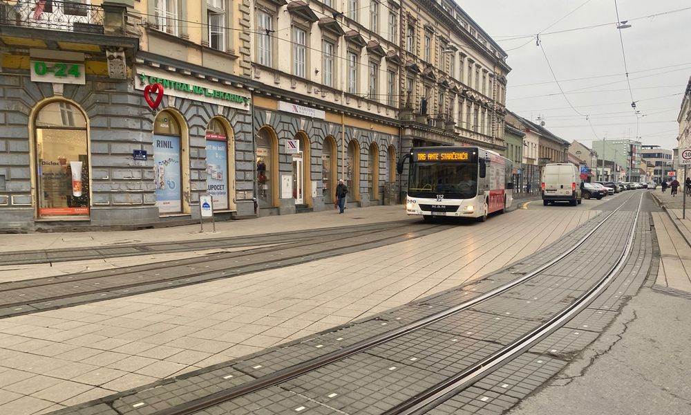 Taman nakon što tramvaj stigne na stajalište kod Name, iz pravca zapada dolazi autobus, ostavlja putnike koji, ako nastavljaju put istoka, prelaze u tramvaj.