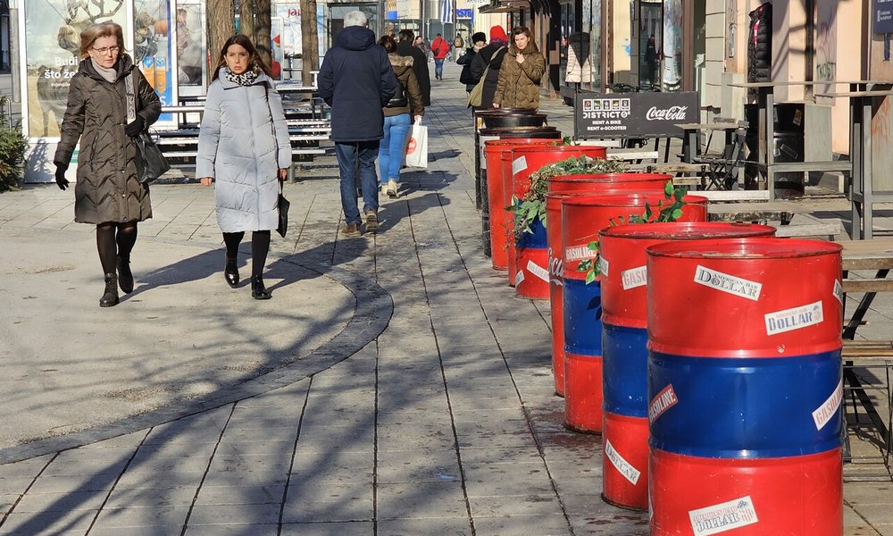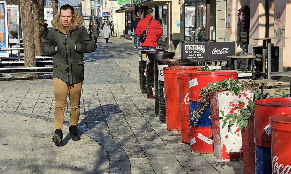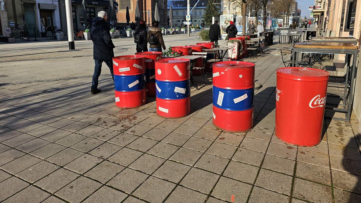 Kojeg smisla ima da građani u centru moraju po cesti zaobilaziti šarenu burad na nogostupu
