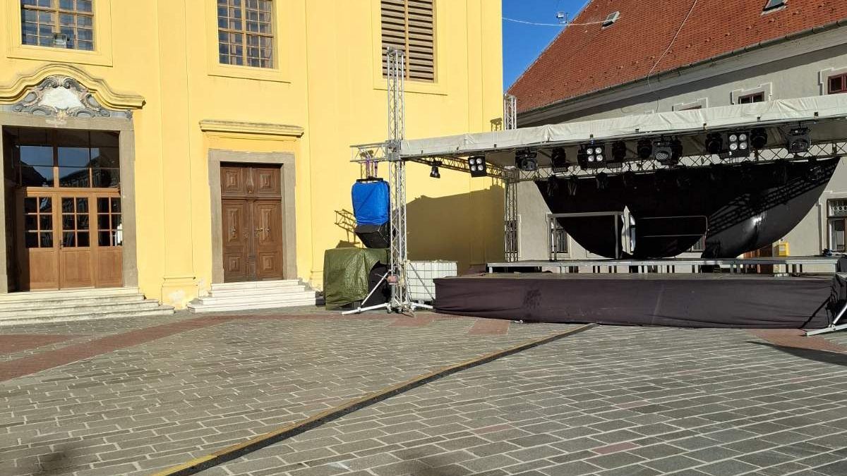 Za tu prigodu organizatori su na trg smjestili i pozornicu koja je nagurana tik do ulaznih vrata u Crkvu sv. Mihaela, pa će vjernici na svetim misama koje u petak i subotu započinju u 18,30 sati moći tijekom propovjedi i pričesti uživati u basovima sa snažnih razglasa koji su gotovo naslonjeni na crkvene ulazne stepenice.