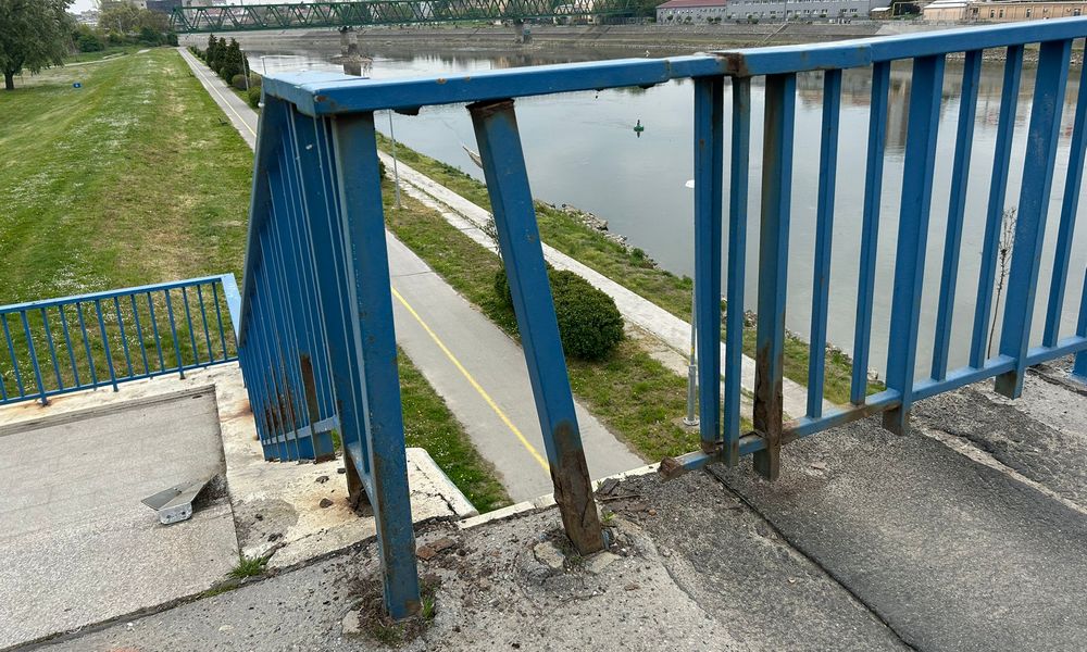 Naime, na dijelu mosta prema Podravlju, točno kod stepeništa, nedostaje komad ograde, pa sada s nekoliko tjedana razmaka opet imamo vrlo opasnu situaciju. Jer kroz ovu rupu lako može netko propasti, tako da je sigurnost pješaka ugrožena.