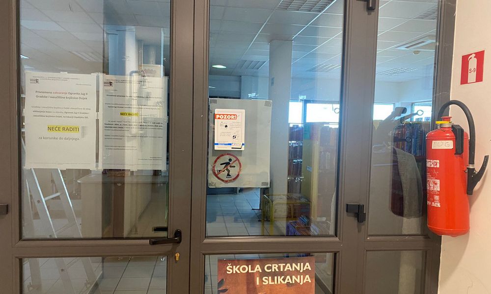 Od lipnja prošle godine ogranak Gradske i sveučilišne knjižnice na Jugu 2 je zatvoren. Kako i danas piše na vratima, zatvoren je do daljnjega, odnosno dok traju radovi na otklanjanju kvara na objektu. A taj kvar je krov koji je procurio uslijed prošlogodišnjih jakih proljetnih kiša.