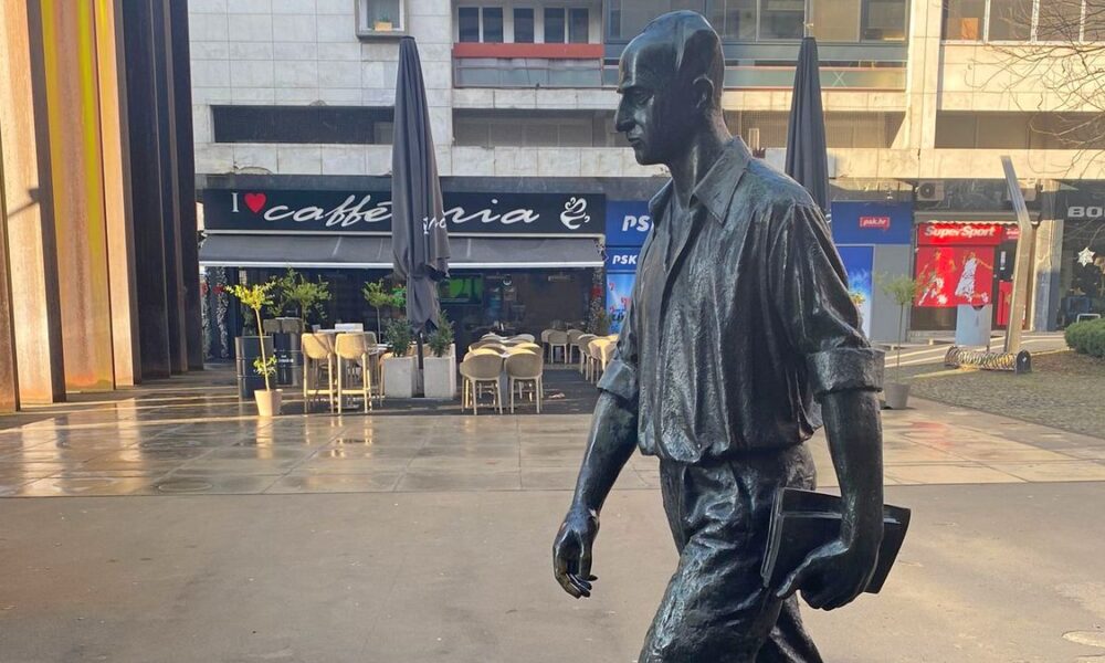 Na Trg slobode postavljen je 1974. i tada je bio prva ulična skulptura u Hrvatskoj