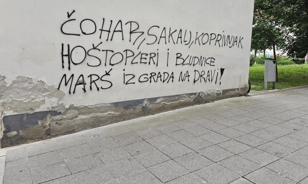 Ekipa je stigla s dva automobila i temeljito su bijelom bojom ispisali poruku