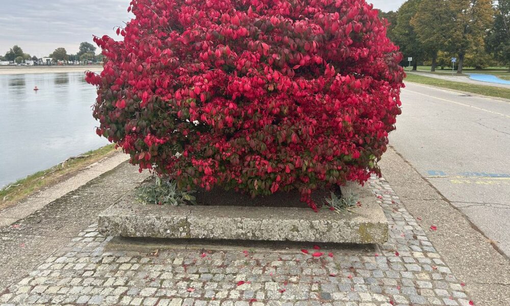 Crveno grmlje, žuti listovi na granama, zeleni ginko u Tvrđi