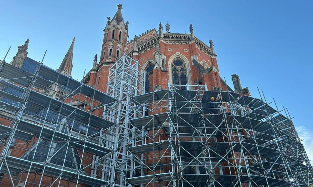 Prolaznici sve češće zastajkuju i proučavaju detalje na fasadi koja je još uvijek prikrivena zaštitnim omotačem