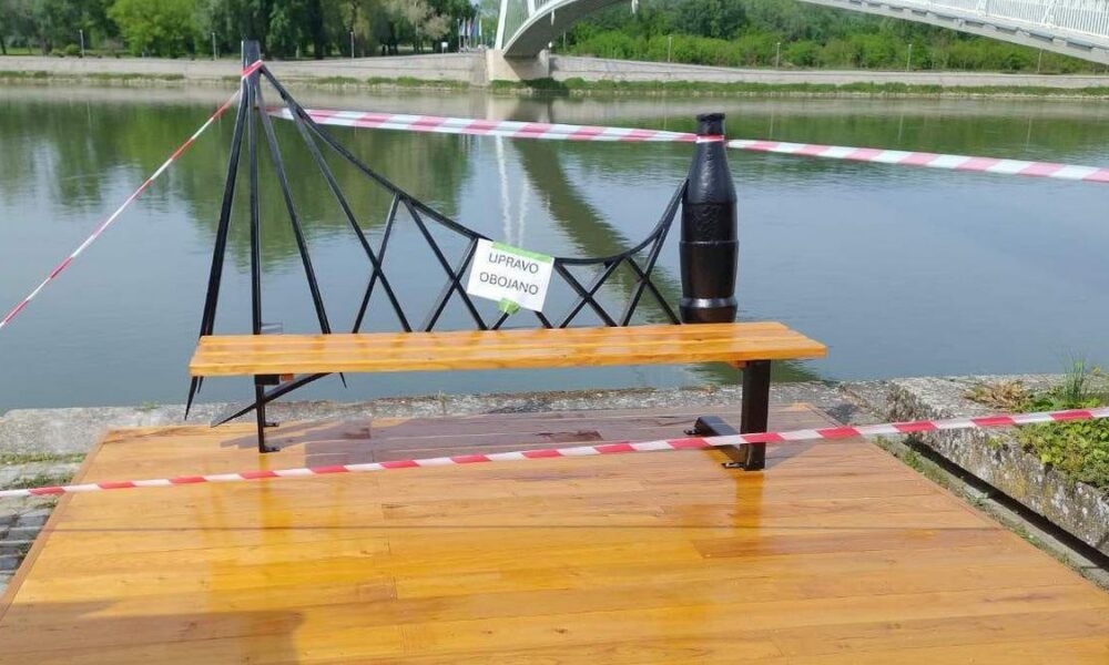Klupa je svježe obojana, a drveni dijelovi baš su olakirani, pa je sve još ograđeno zaštitnom vrpcom