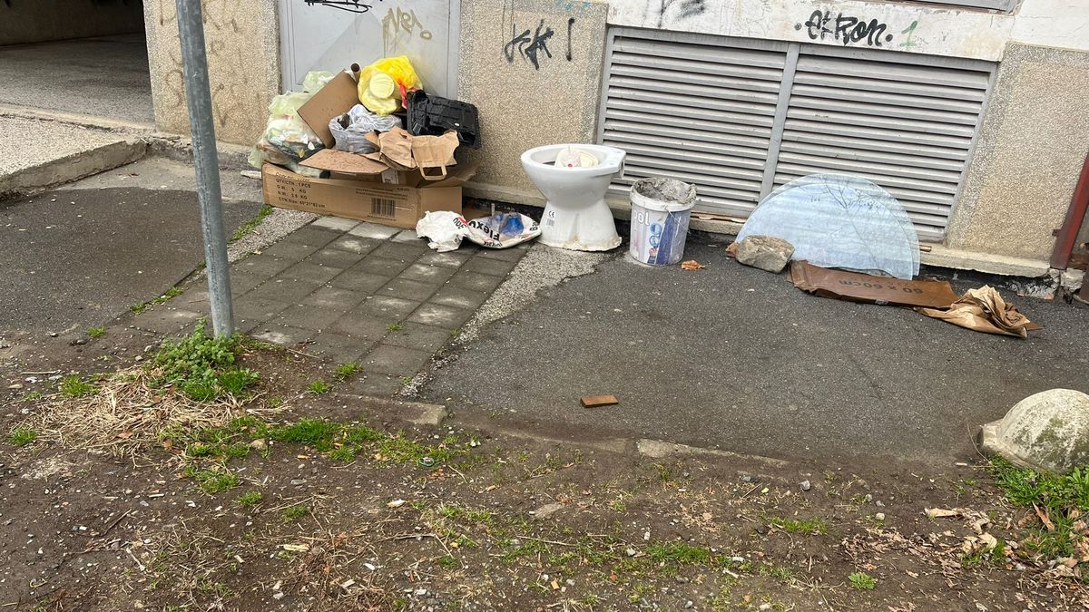 Netko u zgradi vjerojatno obavlja radove preuređenja kupaonice te sustavno iznosi i na ulici ostavlja kupaonsku opreme i otpad od pakiranja u kojima su najvjerojatnije isporučeni novi dijelovi opreme. Tako ovdje lijepo možete uživati u pogledu na staru WC školjku, napukle staklene površine koje su u kupaonici možda nekada služile kao pregrade na kadi, potom tu je i plastična kanta u kojoj je otvrdlo ljepilo za keramičke pločice i konačno kartonske kutije koje se lagano pune ostalim smećem. Moguće je da će za koji dan stići i stari radijatori, neke slavine, možda odvodni slivnici i tko zna što još.