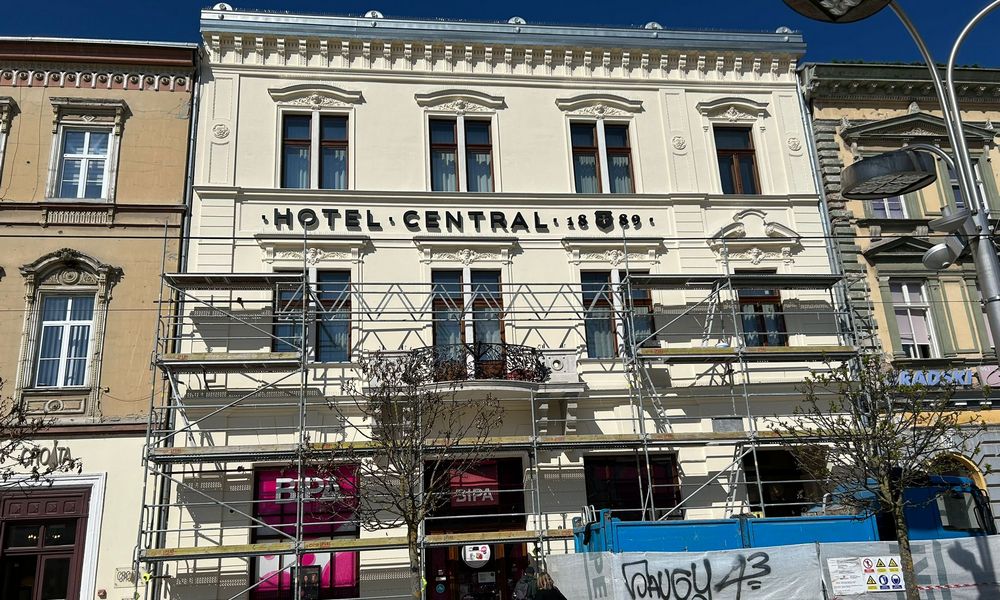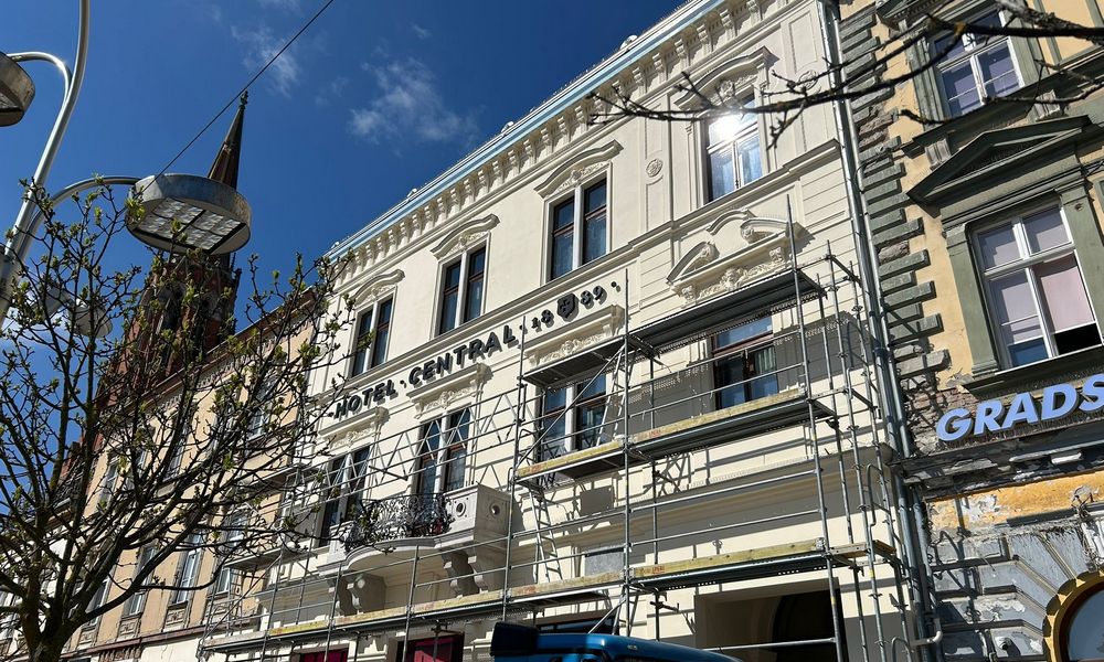 Kada je u veljači prošle godine postavljena skela na hotel Central, nakon dugo godina konačno je krenula njegova temeljita obnova. Prvo su započeli radovi na krovu na kojem se intenzivno radilo do kolovoza 2025. Tada smo već mogli vidjeti novu krovnu konstrukciju i crvene crjepove, a otada, pa sve do danas, trajali su radovi na obnovi pročelja.