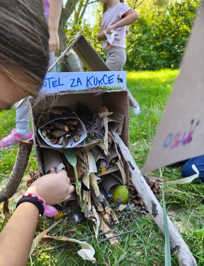 Kaže kako su na prvoj radionici, na kojoj su tema bili kukci, djeca naučila ponešto iz dječjih enciklopedija, izbliza su proučila mrave, osice i vretence, napravili mala umjetnička djela inspirirana kukcima i opremili hotel za kukce. Odmorili su uz voće i na samom kraju pročitali slikovnicu „Buba“.