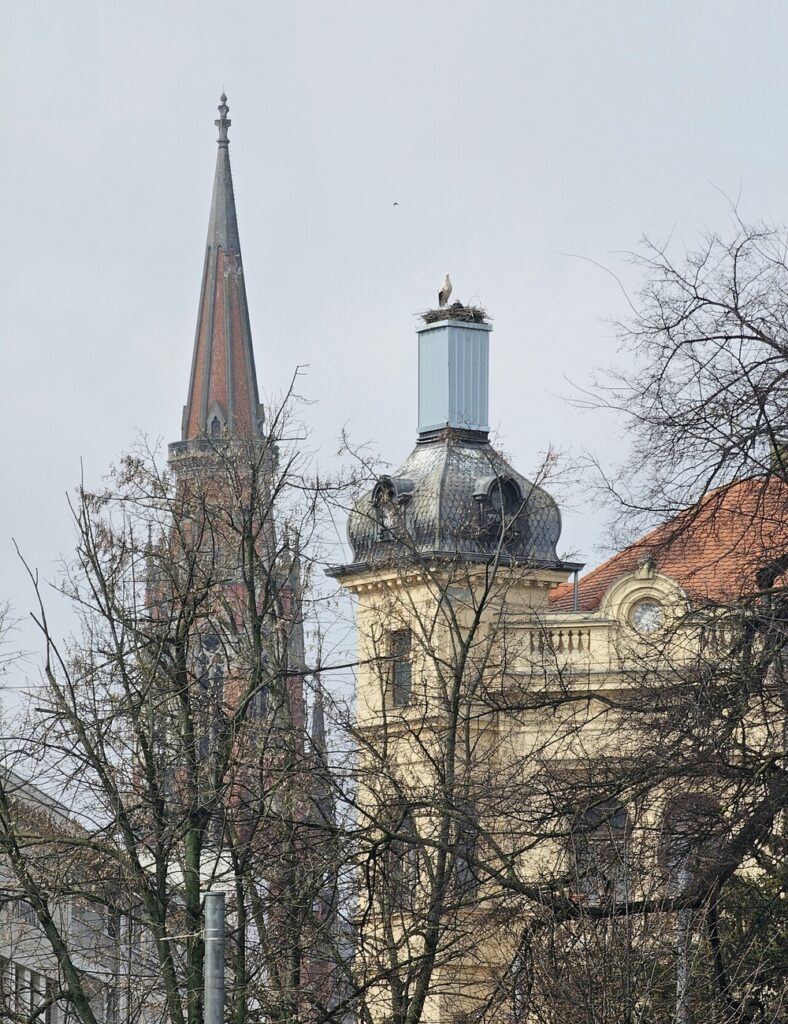 Početkom je prošle godine dotrajali toranj s uglovnice u Kapucinskoj 26 zamijenjen limenom konstrukcijom, no i tada se vodilo računa o rodinom gnijezdu. Nakon skidanja originalnog tornja, radici su pažljivo skinuli i gnijezdo, te ga vratili natrag na limenu zamjensku konstrukciju. Ni prošle, a ni ove godine, rode nisu primijetile razliku.