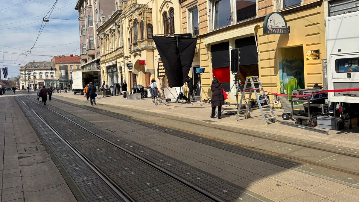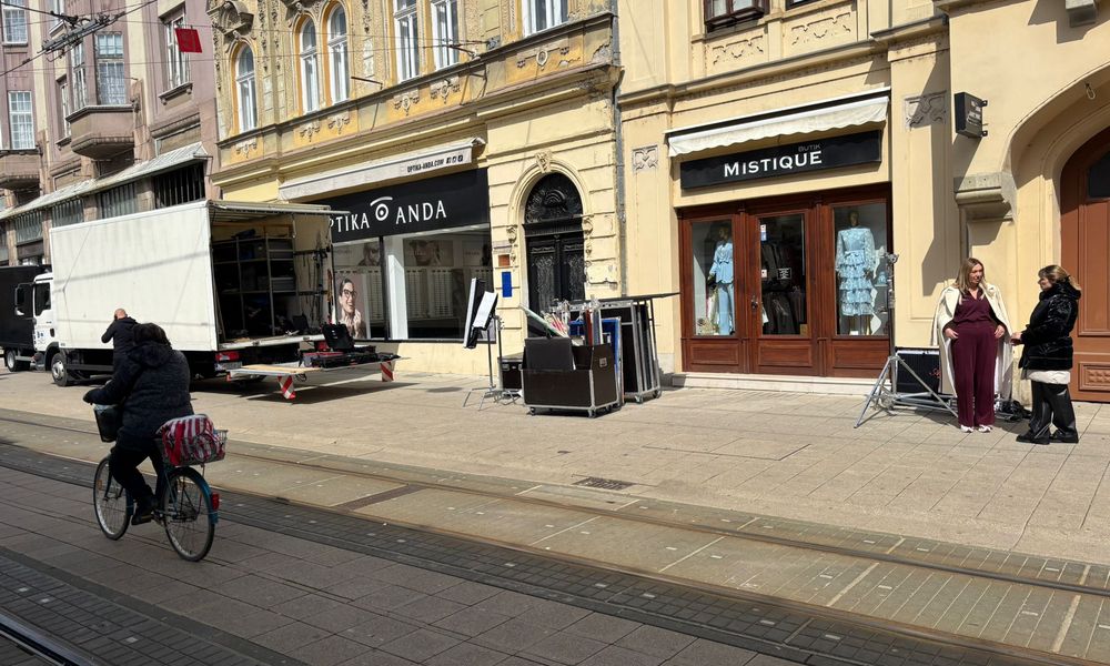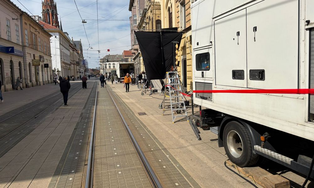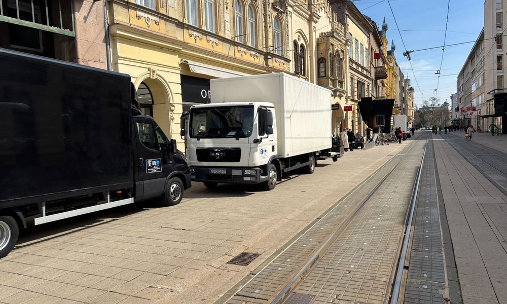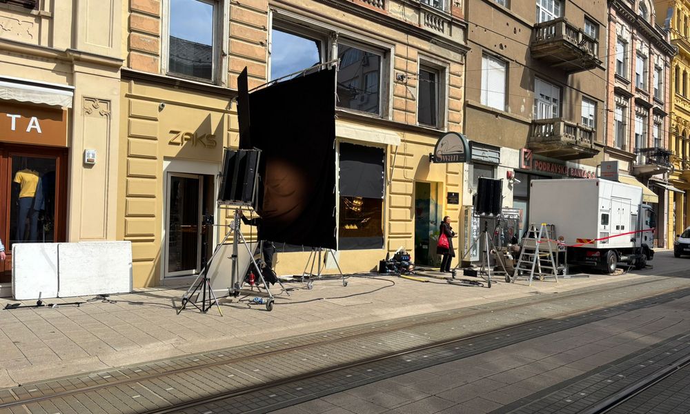 Ekipa s nekoliko kamiona snima reklamni spot za zlatarnicu ZAKS u Kapucinskoj ulici, pa su tom prilikom razvukli opremu i rasvjetu po sjevernom dijelu, počevši od Trga do gotovo polovice ulice.